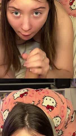 Tiny Teen Tugs Massive Cum Load