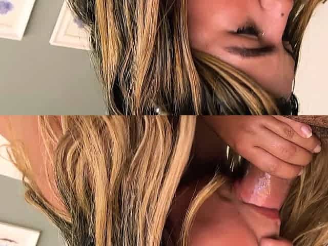 Russian Brunette Surprises Friend with Creampie Blowjob