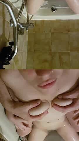 Imagine entering as this babe relaxes in the water, her boobs sagging