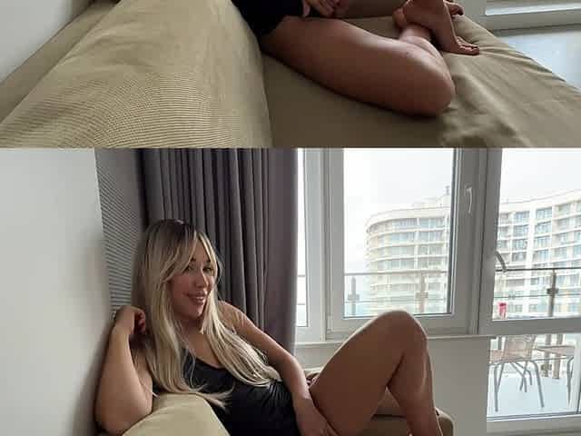 Super hot blonde gives her best buddy a taste of her pussy