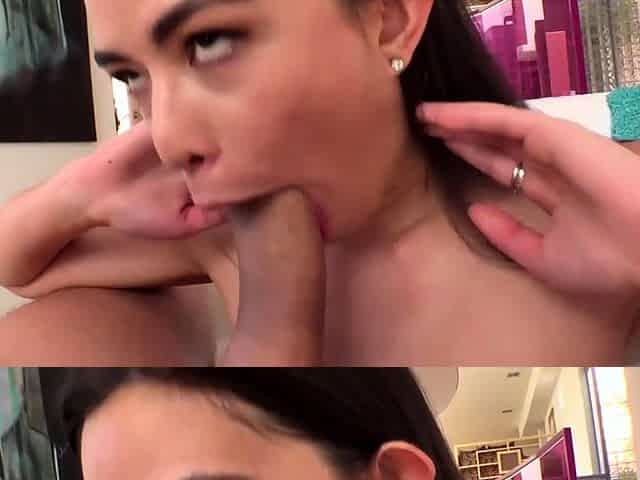 Petite Asian Tinah Star begs for your cum while sucking and riding in POV