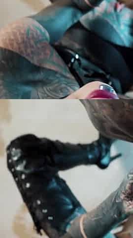 Tattooed Pornstar in High Heels Fingers Her Anal and Gives a Blowjob