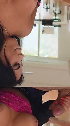 Morenita de cabello trenzado me da una mamada y me hace correr en sus manos