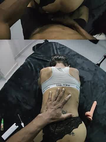 Oiled Dildo Riding Side POV