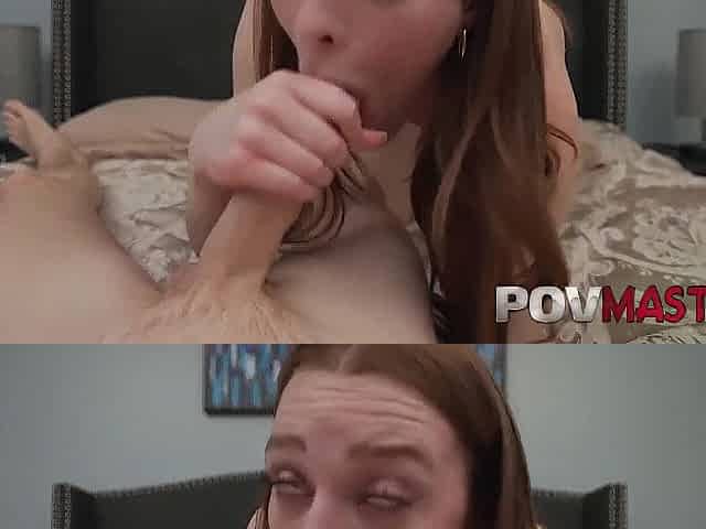 Cute Brunette hair Harley Love Rides Har Dick and Drink Cum in POV