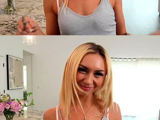 Stepmom Mellanie Monroe gives a morning handjob to help with the day's agenda