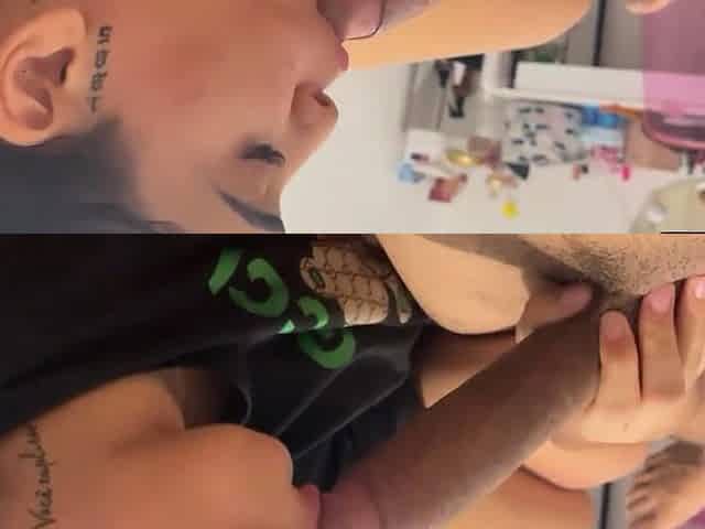 Blonde Tattooed Babe Sucks My Cock on Stream