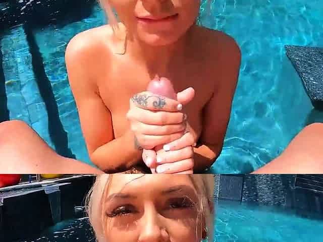 Close-up Tongue Teasing Blowjob by Blonde Amateur Milf