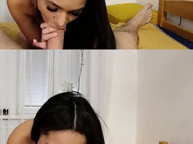 Stockings clad Asian beauty gives Blowjob craving intense pleasure then opens up for passionate POV