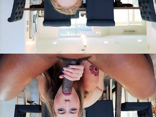 Perfect platinum-blonde Ravena Hanniely gives an amazing deep throat blowjob