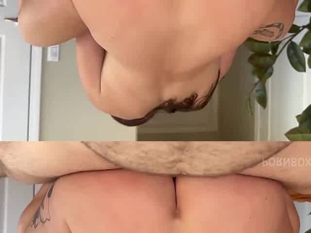 Sensual POV blowjob from a hot tattooed redhead with big tits