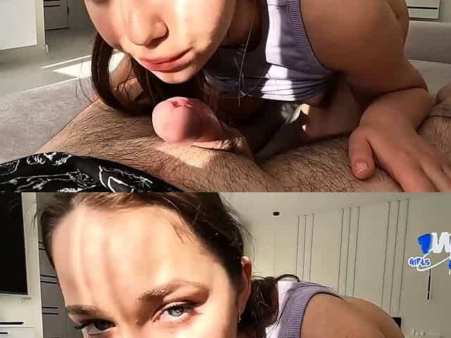 Webcam Girl's Amateur Blowjob and Cum Swallow