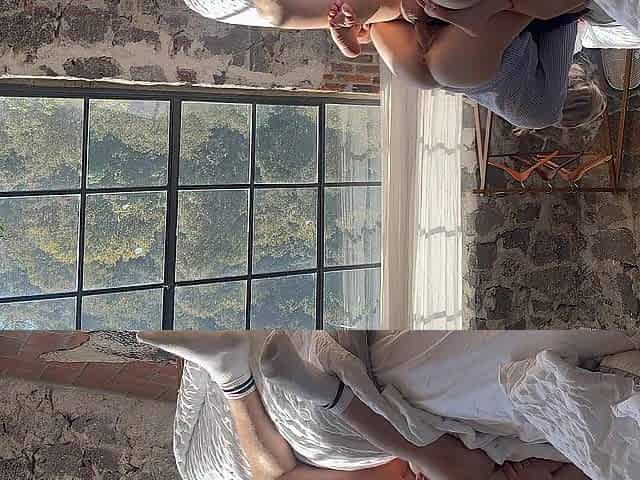 Footfetish - Cum twice - Creampie - Sexy blond lets bang her feet - Feet in cum - Large creampie