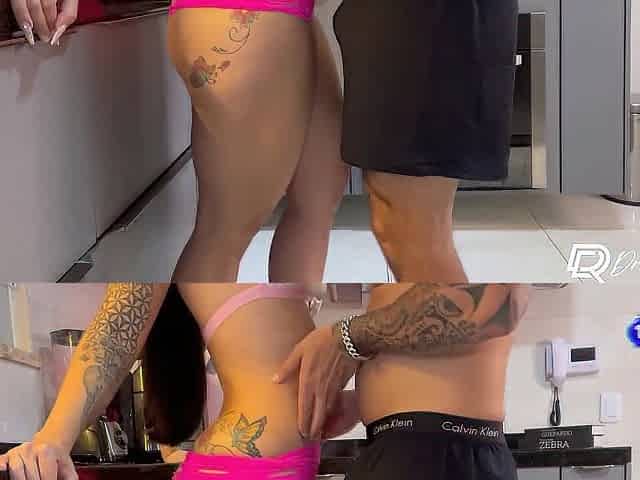 Marido safado comeu a empregada gostosa que limpava a cozinha de roupinha curta