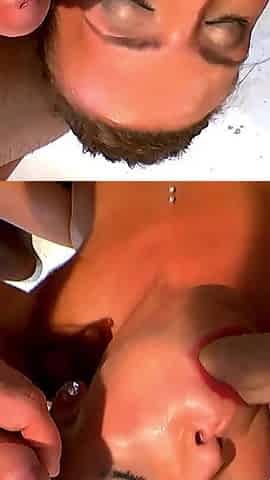 Best close-up blowjob from step-sister Mirallise with plenty of cum in her mouth
