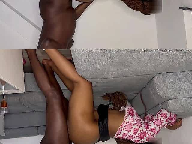 Ebony teen big white cock creampie and