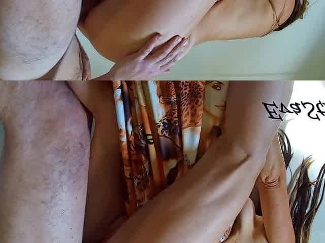 Reality pair takes a shower. Stroking. Suck his large schlong. Screw her from behind