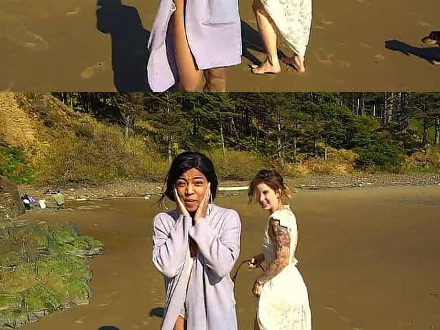 Duo of cock hungry exotic girlies share one big white cock on POV camera