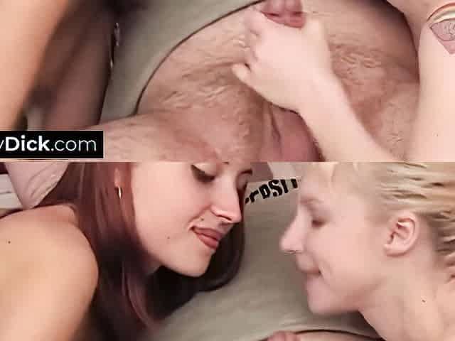 Horny Girls Ride A Huge Cock In Turns Resulting To Mouth Cumshot