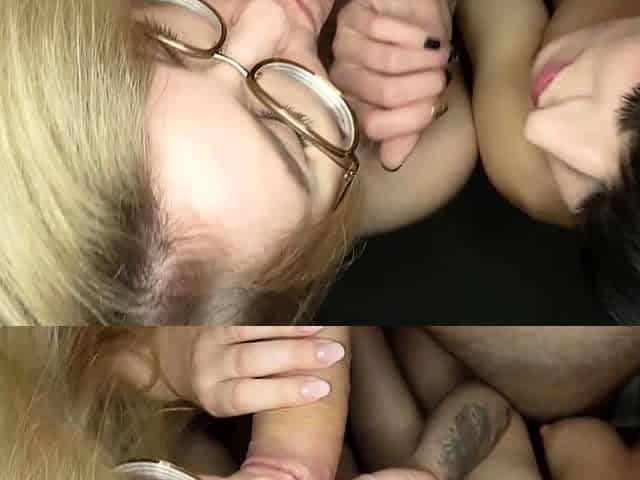 Two Skinny Teens suprise Big Dick Classmate with POV Blowjob