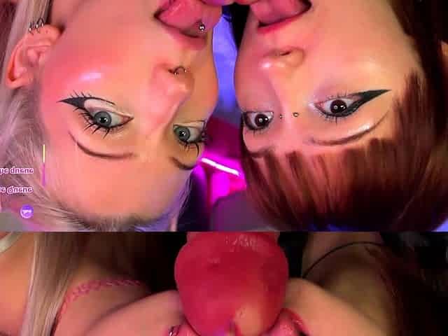 Blonde and Redhead Lingerie POV Blowjob with Facial