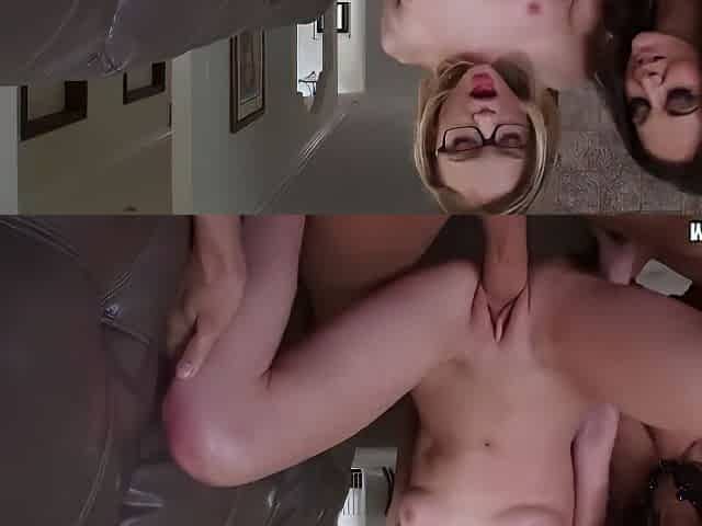 Glasses-clad Danira and Ashlyn in steamy skinny girl threesome
