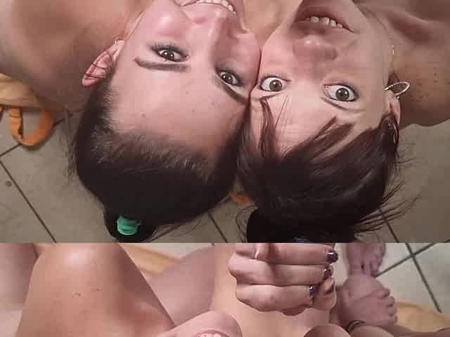 Two Sluts Jerking My Dick in POV, Cum in Eye, Dirty Talk, Piss in Eyes