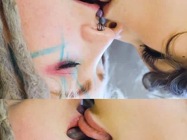 Alt punk girls Anuskatzz and Eden share a tattooed cock