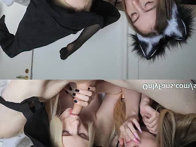 Two Pretty Gals Masturbate And Blowjob Hard Cock In Pov