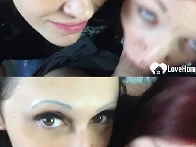 Two hot chicks sharing a cock