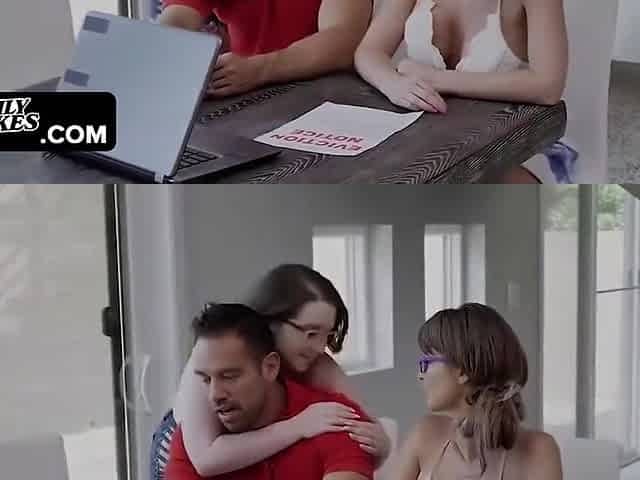 Lucky Stud Pounds His Huge Natural Boobed Stepdaughter And His Sexy Wife For Money With Emily Addison