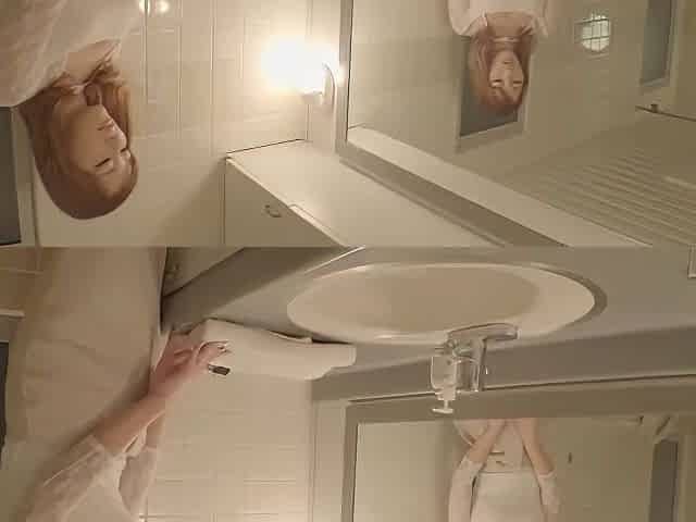 Redhead Pregnant Woman in White Lingerie with Big Wet Pussy