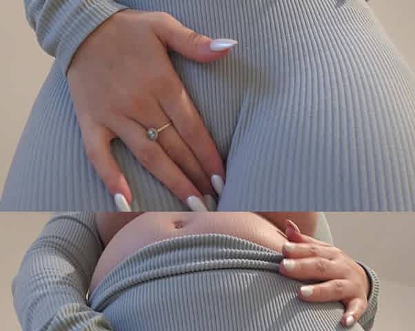 Nasty preggy woman touching her vagina.