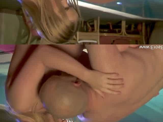 Blonde bombshell Rebecca Jane Smythe gets double teamed by two eager guys and covered in jizz!