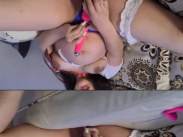 Cute Pregnant Latina Teasing With Dildo On Webcam