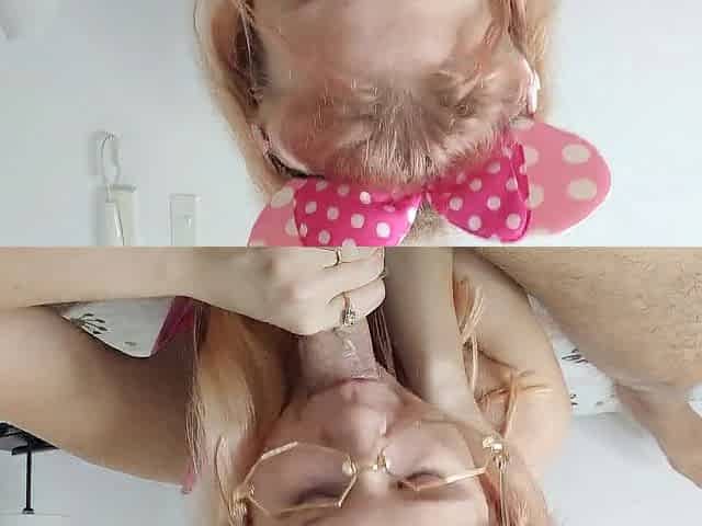 Super blow job, this cute blond actually love sucking weenies, full throat of jizz, 4K.