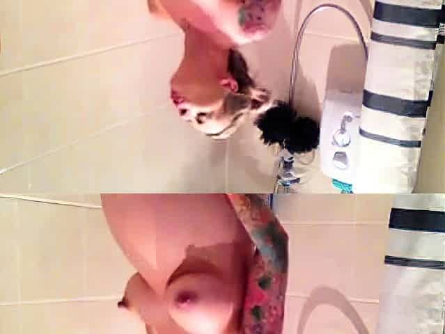 just pregnant slut Annie Andre show tits in shower hidden