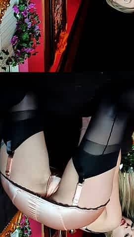 Pregnant milf measures her figure and masturbates with panties. Homemade.