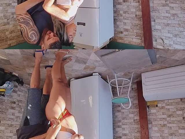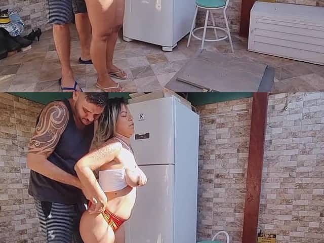 Nasty neighbour is tidying her area with her large booty to tempt me!