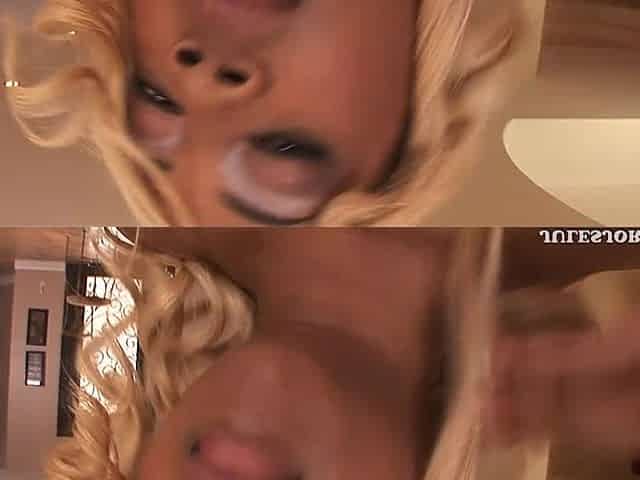 Blonde babe Para Princess shows fake tits and sucks a dick