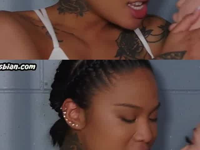 Sassy brunette gals pussy licking one another in prison then finger each other