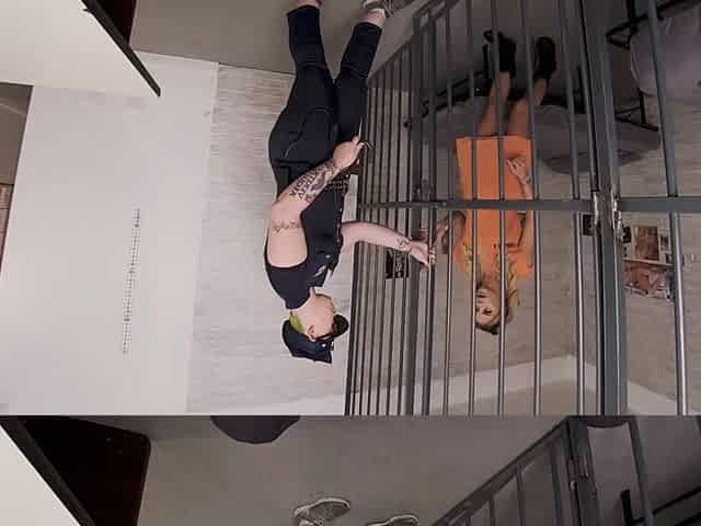 Horny girl finds herself all alone in a jail cell and starts masturbating