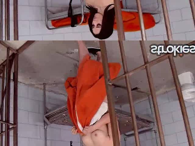Strokies Jessica Ryan and Iris Rose jail cell handjob