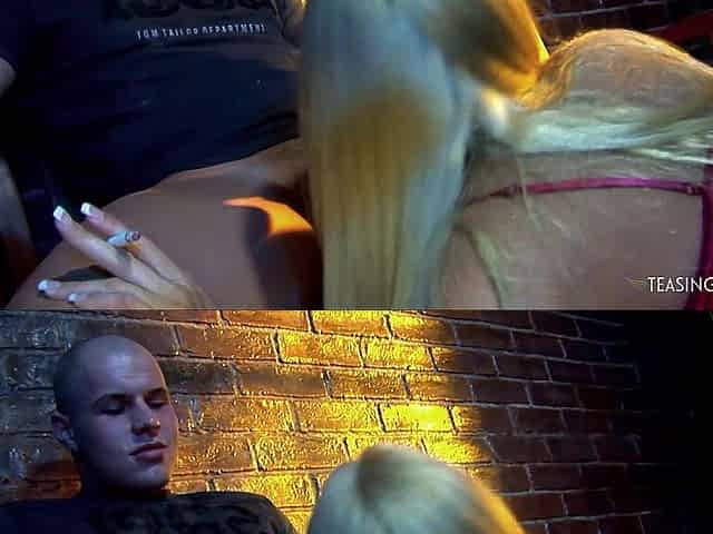 Horny blonde slut smoking while getting her pussy drilled