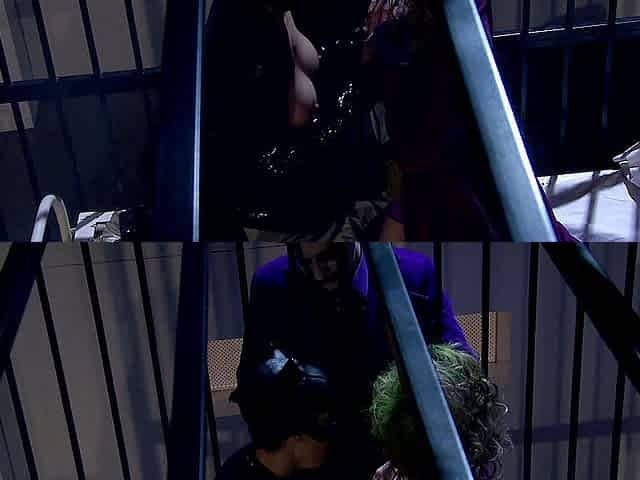 Katwoman Jennifer Dark prowls into a prison cage 3way