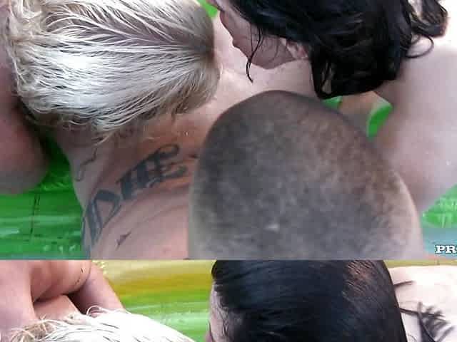 Naughty girls are using an opportunity to have some fun during a private pool party