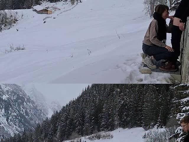 Pair HIDE TO BANG whilst hiking IN THE SNOW,mountain forest and birdsong, romantic private love