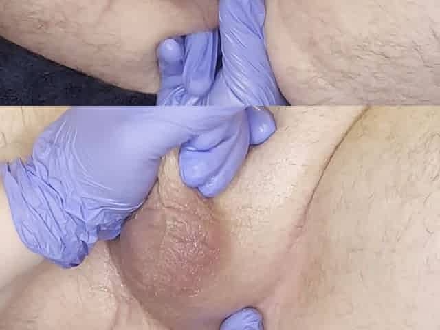 Prostate massage with gloves for my husband