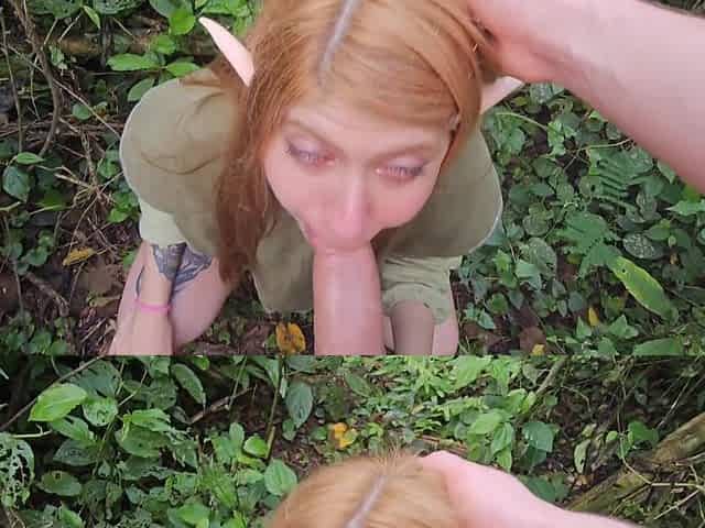 Horny redheaded elf stumbles upon a human and lets him fuck her