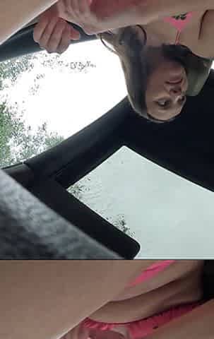 Une small française se gode le cul et la chatte sur une aire autoroute, elle fais sa libertine